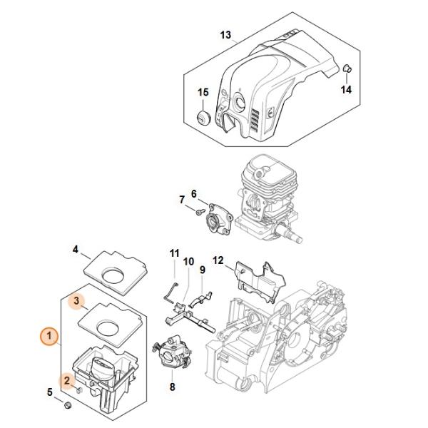 Denominaciones STIHL: Carcasa del filtro, Caja, Soporte