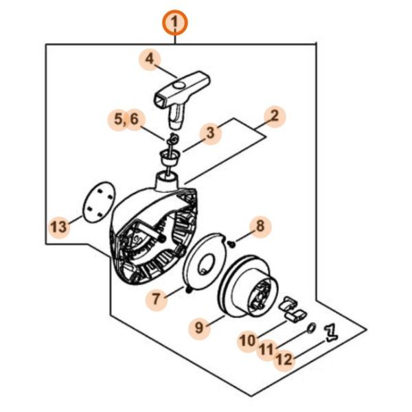 Denominaciones STIHL: Arrancador, Dispositivo de arranque, Mecanismo de arranque