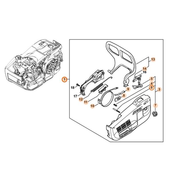 Denominaciones STIHL: Tapa del piñón de cadena con palanca sistema freno de cadena