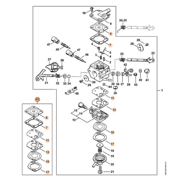 Denominaciones STIHL: Juego de piezas del carburador, Kit de juntas y membranas