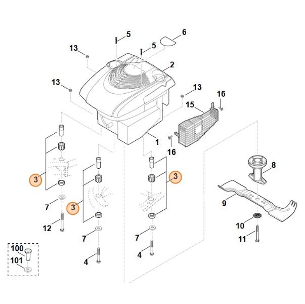 STIHL 63400071025 - Juego de silentblock antivibración motor cortacésped VIKING