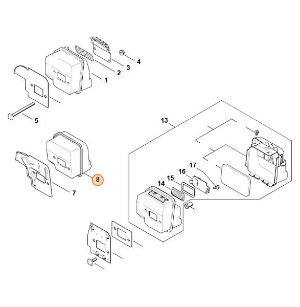 Denominaciones STIHL: Silencioso, Tubo de escape